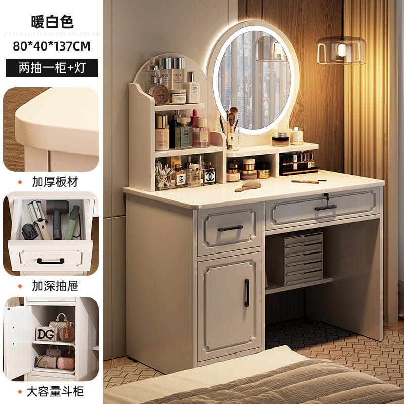 بيرو خشبي باللون الأبيض مع مراية مضيئة بشكل دائري od-2