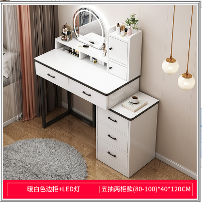 بيرو خشبي باللون الأبيض مكون من دفات وجوارير od-93