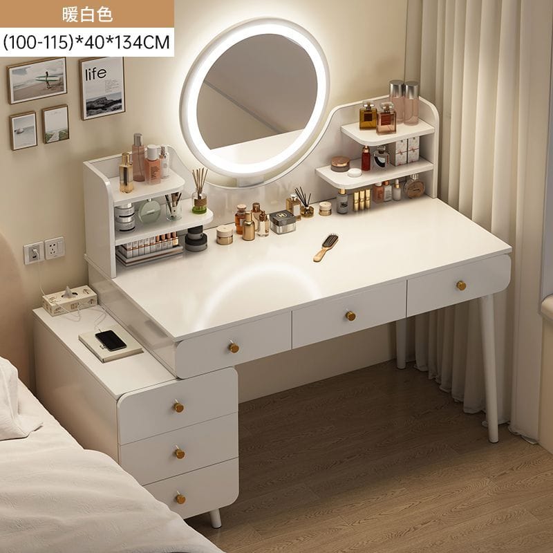 بيرو خشبي باللون الأبيض مكون من 6 جوارير مع مرآة مضيئة od-34