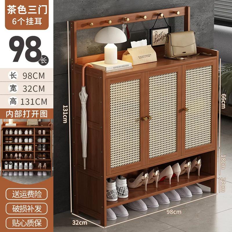 خزانة احذية مصنوعه من البانبو الطبيعي مكونة من 3 دفات وعلاقه ورف سفلي bd-43