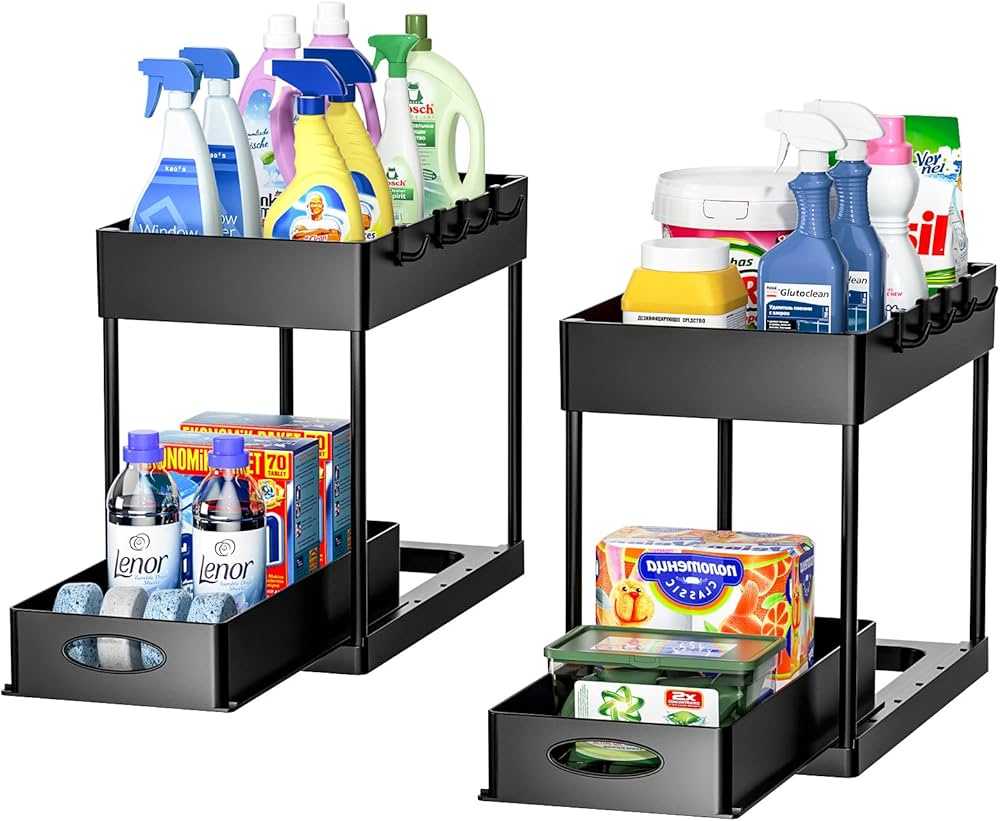 رف تخزين للمطبخ قابل للسحب مكون من طبقتين مع علاقات