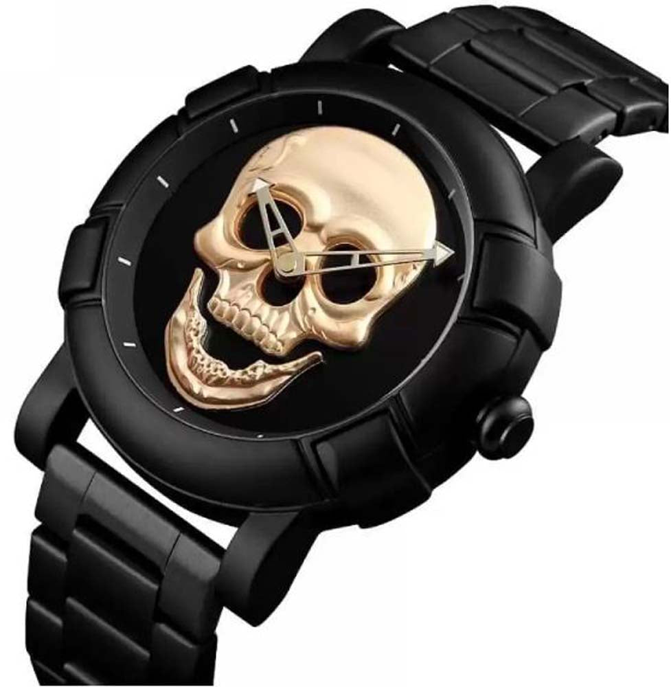 שעון מודרני עם מסגרת שחורה בצורת גולגולת הוא יצירת אמנות נפלאה המשקפת את הסגנון האישי שלך ותמיד הופכת אותך למרכז תשומת הלב