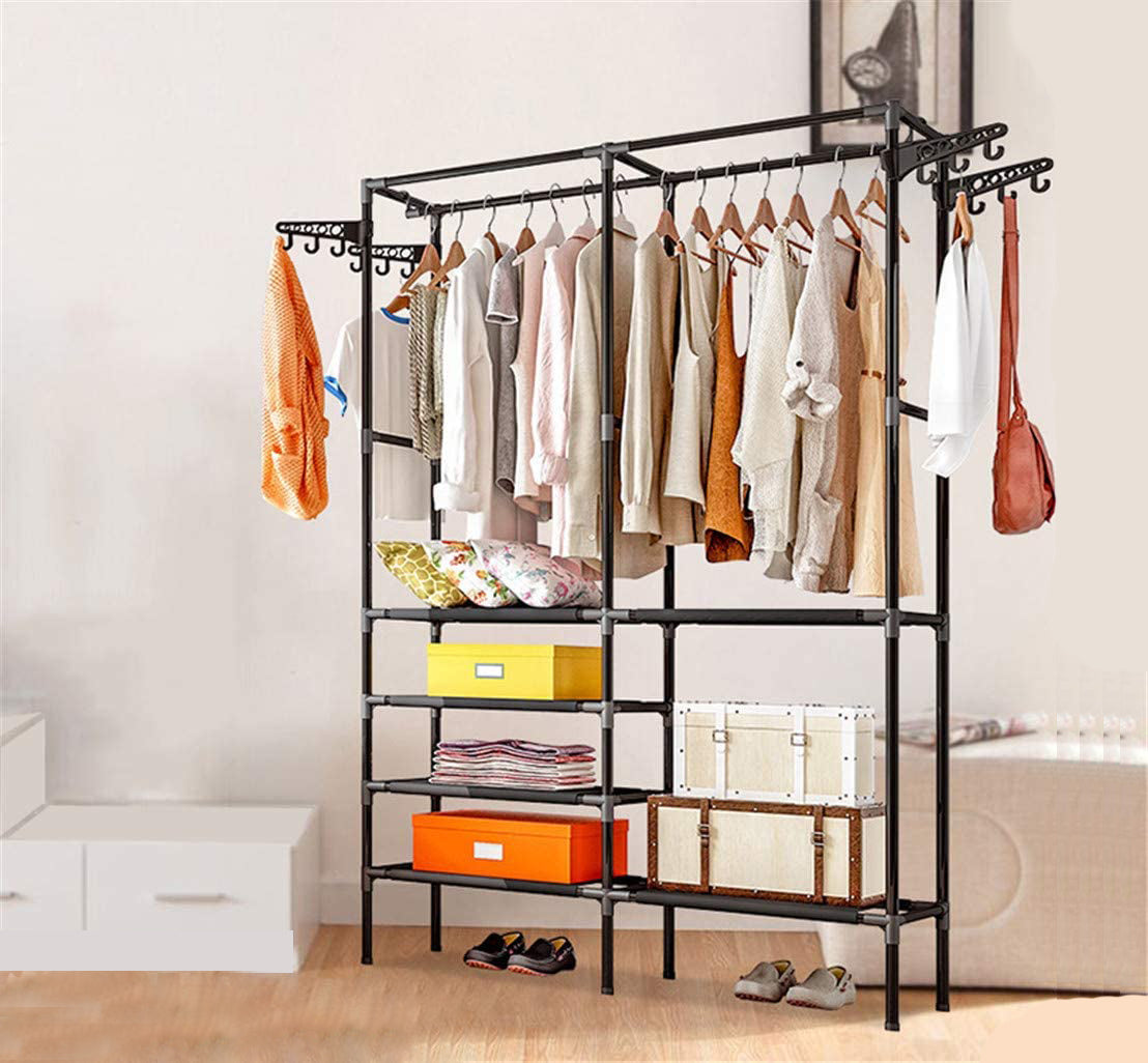 עמדת בגדים ממתכת המכילה קולבים ומדפים במידות גדולות היא בחירה מצוינת לארגון הבגדים והחפצים האישיים שלכם בצורה פרקטית ואלגנטית. הוא כולל עיצוב יציב עם מקום בשפע כדי לענות על צורכי האחסון שלך.