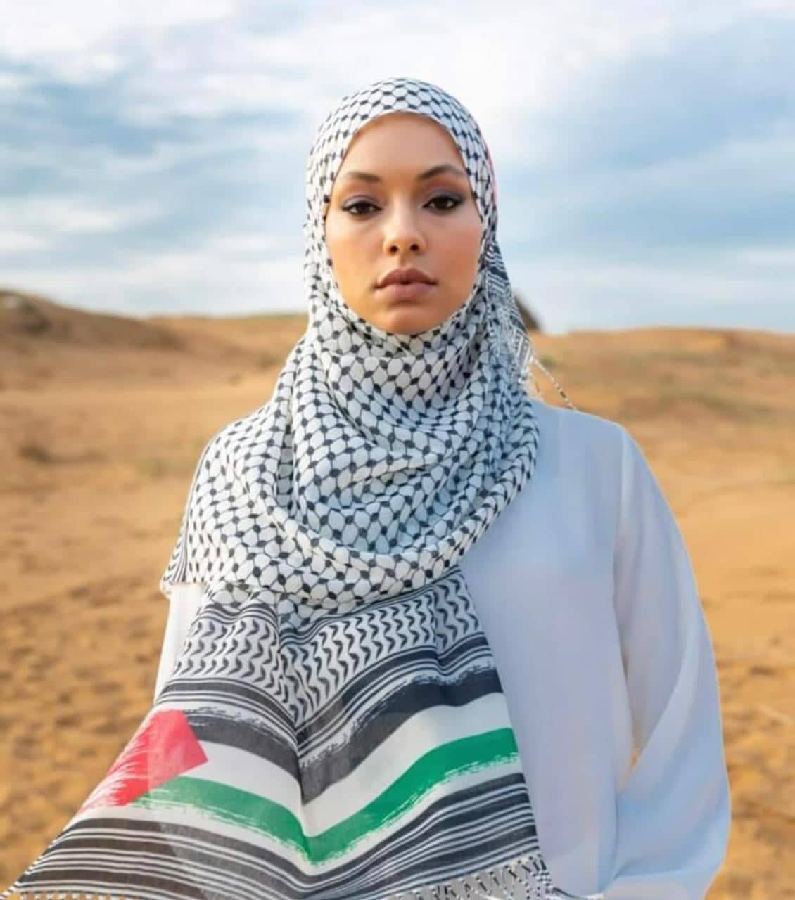 צעיף לנשים עם דגל ודוגמת כובע פלסטין - סמל לאותנטיות וגאווה