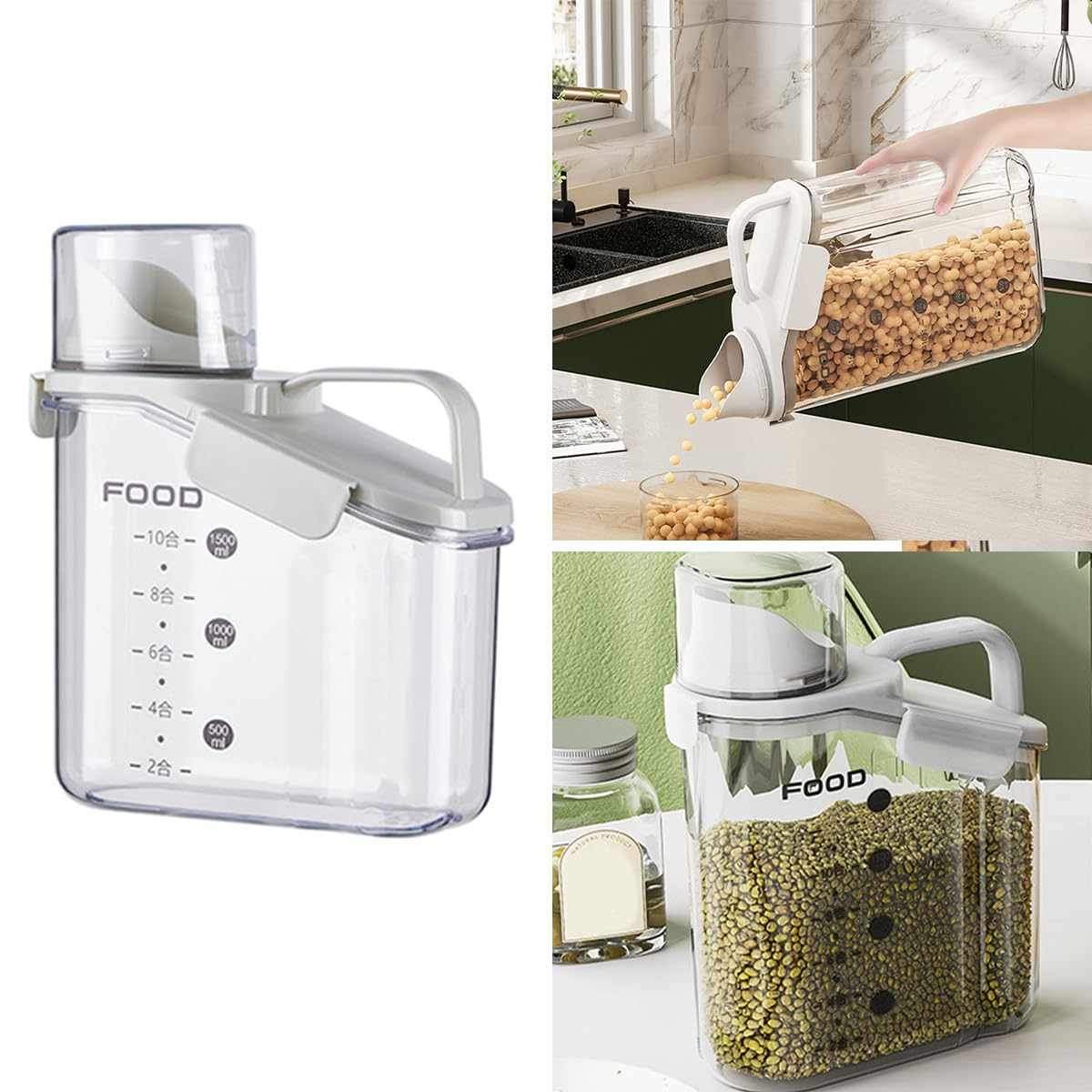 علب تنظيم البقوليات سعة 1000 مل مع كوب معياري