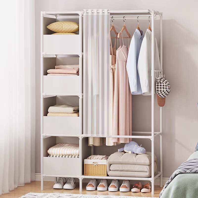 ארגונית בגדים עם וילון מכיל קולבים ומדפי צד ותחתונים e-4