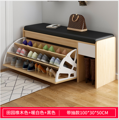 خزانة احذية بباب قلاب مع مقعد باللون الخشبي ab-119