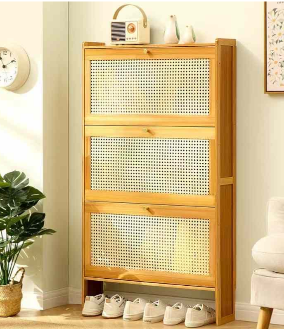 خزانة احذية مصنوعه من خشب البامبو مكونة من 3 دفات قلابة k-2