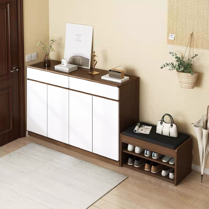 خزانة احذية مع مقعد باللون الأبيض والبني md-88+md-89