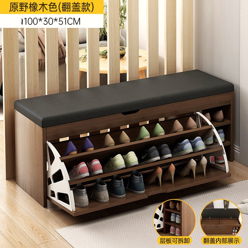 خزانة احذية مع مقعد ورف للتخزين باللون البني od-29