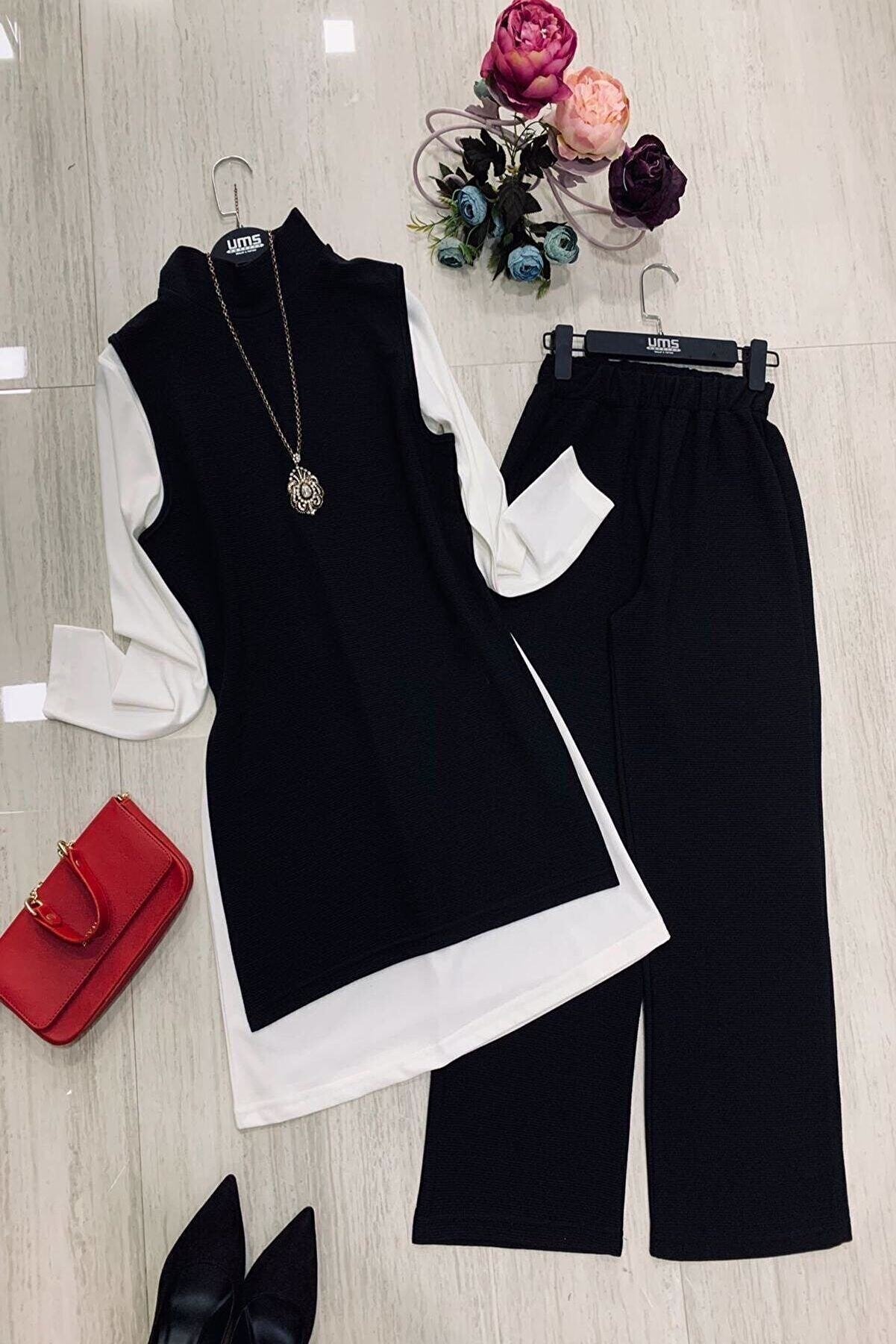 طقم ثلاث قطع باللون الأسود هو الخيار الأمثل للباحثات عن إطلالة عصرية وراقية تصلح لكل المناسبات.
