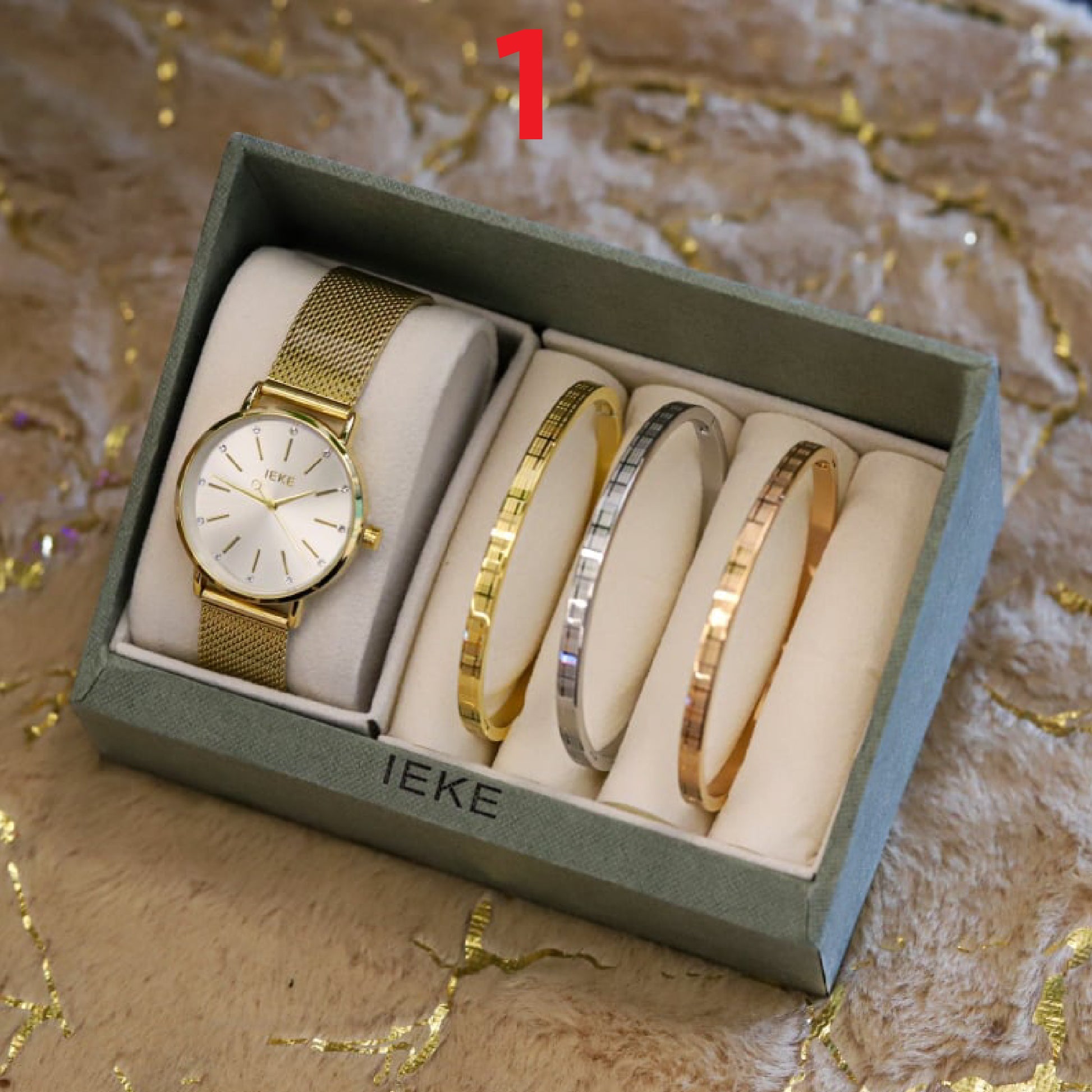 طقم ساعة نسائية مع أساور بعدة موديلات