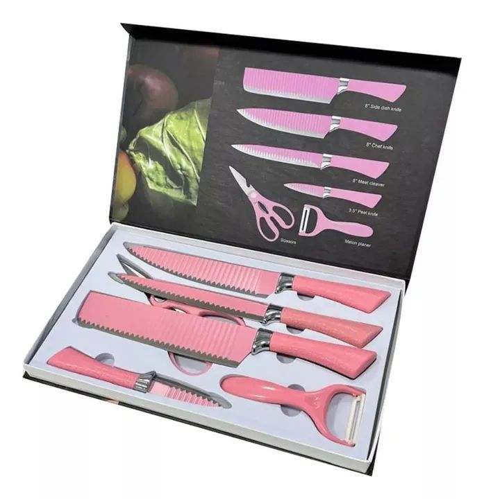 طقم سكاكين باللون الزهري مكون من 6 قطع
