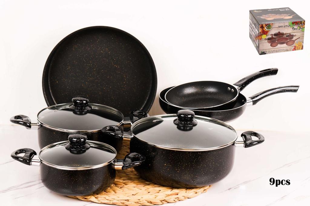 طقم طناجر جرانيت مكون من 9 قطع بعدة الوان