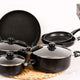 - الطقم مصنوع من الجرانيت عالي الجودة، الذي يوفر توزيعًا متساويًا للحرارة ويعزز الأداء الممتاز للطهي.