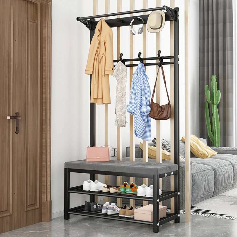 • علاقة ملابس متعددة الوظائف: توفر لكِ المساحة اللازمة لتعليق الملابس بشكل مرتب، بينما توفر المقعد القوي والراحة أثناء ارتداء أو خلع الأحذية.