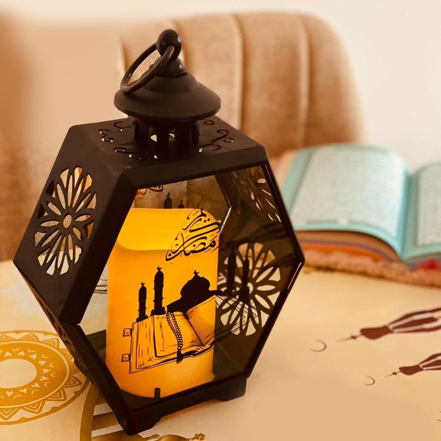• تصميم مزخرف برسومات رمضانية: يتمتع الفانوس برسومات رمضانية فريدة مثل الهلال والنجوم، ما يضيف طابعًا تقليديًا وأصيلًا إلى الأجواء الرمضانية في أي مكان.
