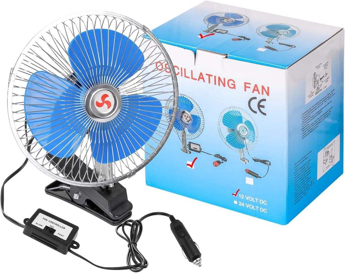 مروحة سيارة قابلة للدوران مع ملقط للتثبيت