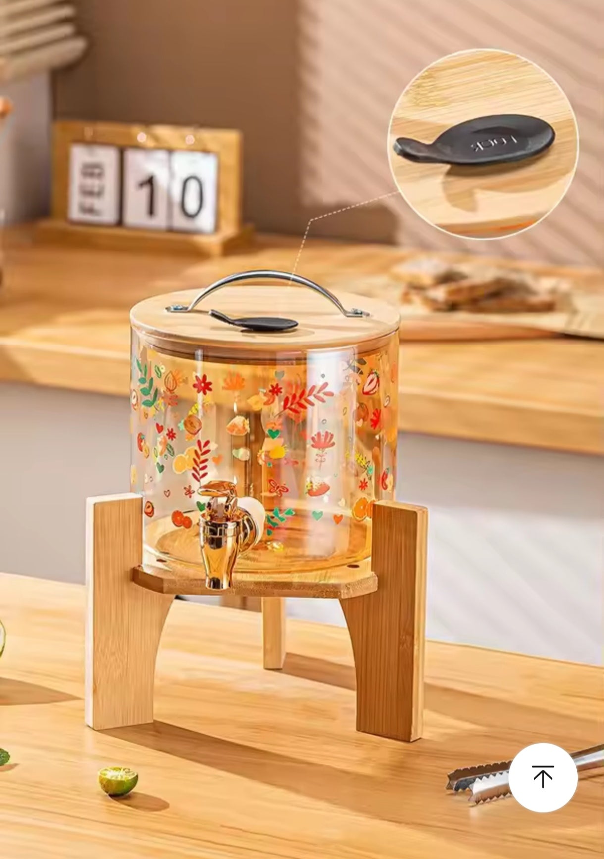 وعاء عصائر سعة 3 لتر بتصميم عصري مع قاعدة خشبية